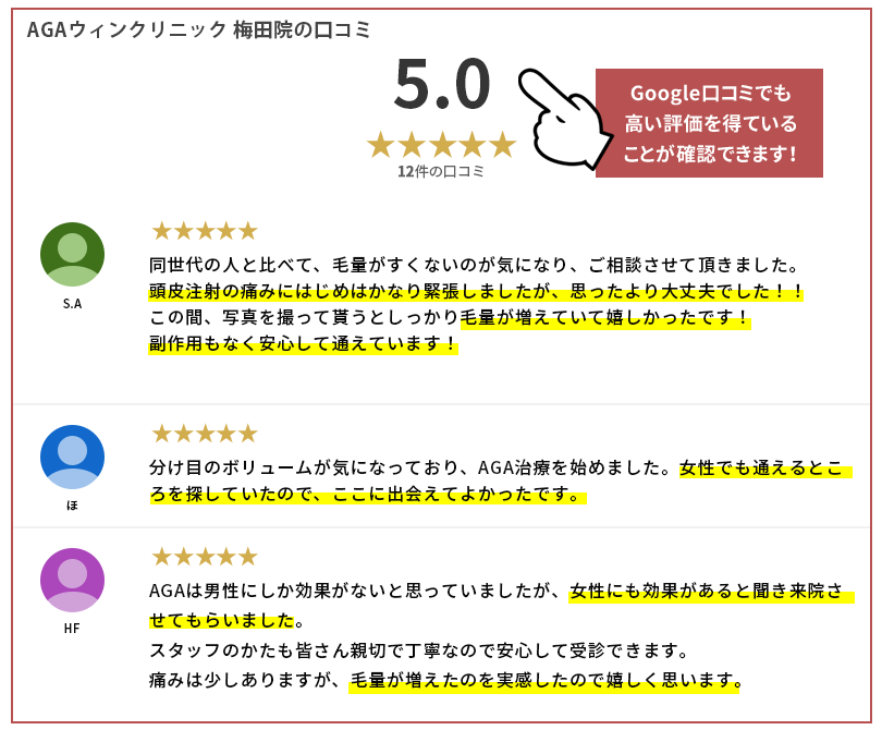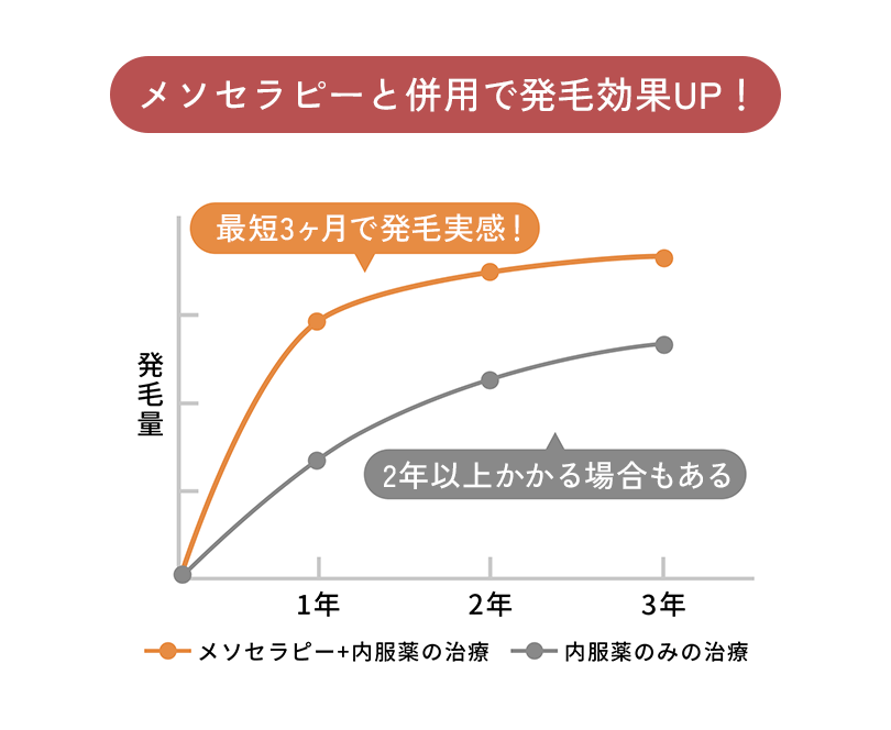 一般的なFAGA治療では効果を感じるまでに少なくとも半年ほどかかりますが、こちらでは、多くの方が3~4ヶ月目頃には効果を実感し始めています。